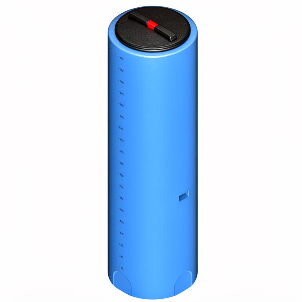 Емкость имеет вертикальную цилиндрическую форму, позволяющую хранить значительный объем жидкости на небольшом пространстве. Широкая горловина удобна для обслуживания емкости внутри.