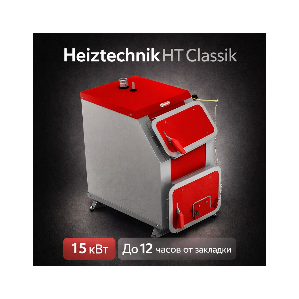 HeiztechnikHeiztechnik HT Classic Plus 15 кВт + АВТОМАТИКА! Оптимальная мощность для большинства домов (70–150 м²). Греет до 150 м² до 15 ЧАСОВ на угле! Контроллер Logic-105 + вентилятор + чугунные колосники. Сталь котловая 4 мм. Польша/Россия.